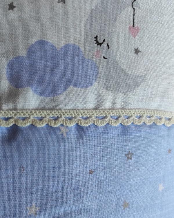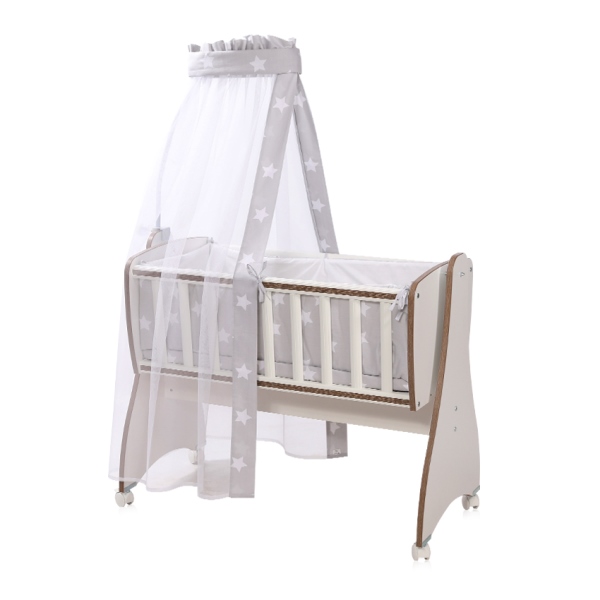 Slika je simbolična in prikazuje opremljen način zibelke. Zibelka, ležišče in stojalo za baldahin niso vključeni v ceno in se naročijo posebej.