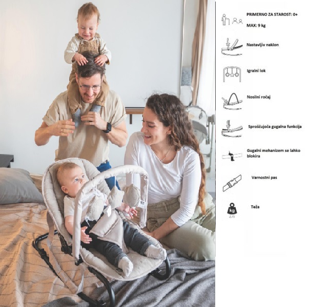 Udoben ležalnik gugalnik Lorelli ELIZA je odličen prostor, kjer lahko vaš otrok ne le počiva, temveč tudi spi, saj je mogoče enostavno prilagajati položaje. Ležalnik ima tudi zabavno gugalnico z igračami, ki otroka zabavajo in mu pričarajo nasmeh na obraz. Za večjo varnost in udobje lahko funkcijo zibanja zaklenete. Zaradi materiala je ležalnik zelo lahek in enostaven za prenašanje. K lažjemu prenašanju pripomorejo tudi ročaji. Prevleko je mogoče enostavno odstraniti in oprati.