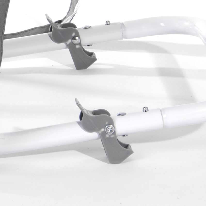 Čiščenje in vzdrževanje: Kovinske in plastične dele je treba čistiti s hladno vodo in blagim čistilnim sredstvom. Snemljive prevleke lahko operete ročno s toplo vodo (največ 30 °C). Ne belite. Ne likati. Sušite zunaj neposredne sončne svetlobe. Gugalnika ne shranjujte v bližini vklopljenega ventilatorja, virov toplote, ostrih predmetov in posod z vodo. Ne uporabljajte gugalnika, če je kateri koli del poškodovan ali manjka.