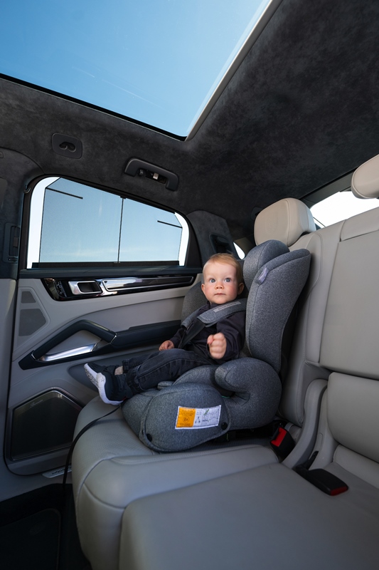Naslon za glavo v obliki črke U otroku ponuja idealen položaj in oporo glave med vožnjo. S preprosto nastavitvijo višine se lahko enostavno prilagodi velikosti rastočega potnika. Udoben vstavek podpira manjšega otroka na začetku in ga je mogoče enostavno odstraniti pozneje. Otroški avtosedež je odobren po novem standardu i-size R129 za otroke od 76 cm do 150 cm.