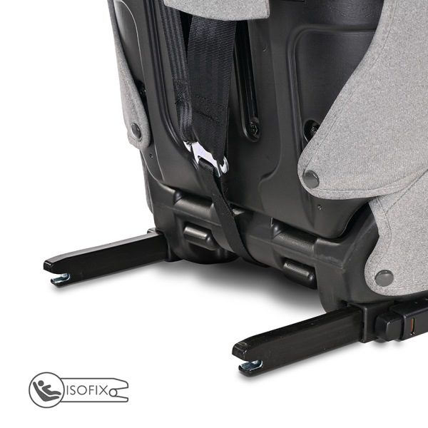 Enostavna namestitev prek ISOFIXA in top tether za višino 76-105 cm in z varnostnim avtomobilskim pasom z ali brez priklopa na  ISOFIX  za višino otrok 100-150 cm.
