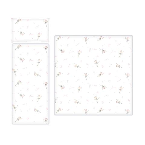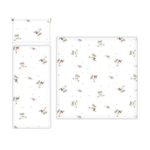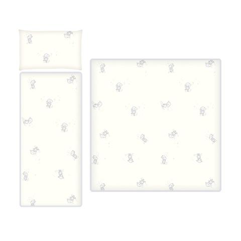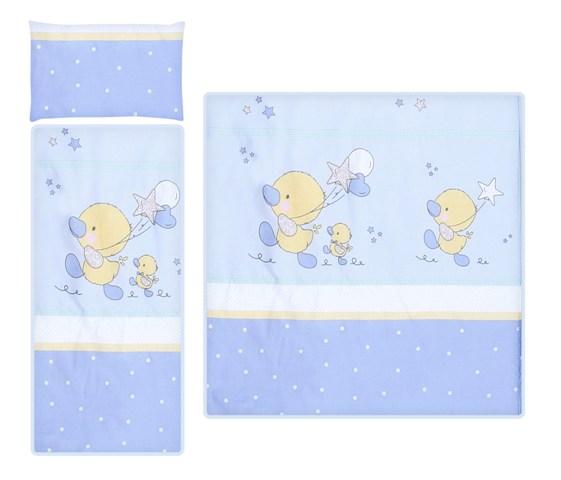 Kompletek primeren za vsako košaro vozička vsebuje podloženo podlogo za dno košare pribljižne dimenzije, povšterček 42x26, podloga 78x38 in prešito odejico 78x80cm.
