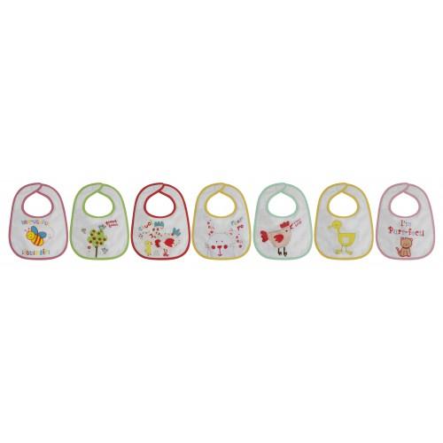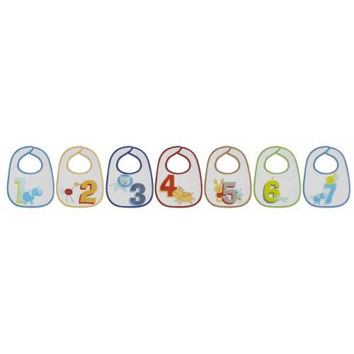 Set slinčkov vam daje možnost vsakodnevno mejavo slinčka. V paketu je sedem slinčkov.Namenjeni so za vse starosti otrok in se učijo samostojno jesti .Oblazinjenje je narejena iz mehkega, naravnega materiala. Tisk je namenjen za vsak dan v tednu, ki pritegne pozornost otrok. Enostavni za vzdrževanje. Namenjen je za novorojenčke in tudi za večje otroke. Praktično za vse tri obroke, zajtrk, kosilo in večerjo, sedem slinčkov je dobra zaščita za otroška oblačila. Izdelani so iz mehkega bombaža in podložen z PVC podlogo proti premočenju. Odtisi so zanimivi in pritegnejo pozornost otrok. Zagotavljajo popolno zaščito za otročka in oblačila. Je enostaven za uporabo .