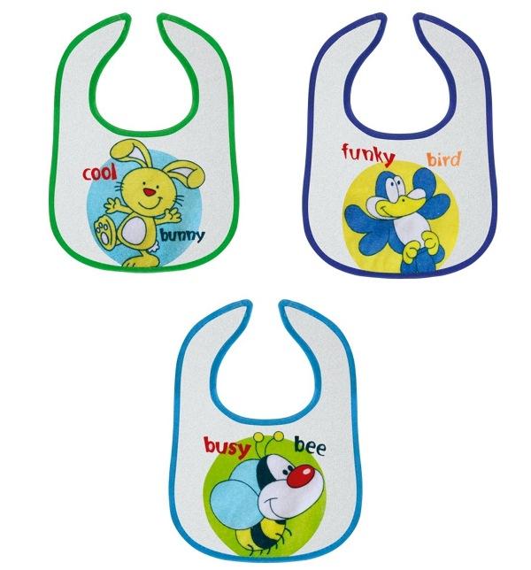 Set slinčkov 3 kosi vam daje možnost vsakodnevno mejavo slinčka. V paketu so tri slinčki.Namenjeni so za vse starosti otrok in se učijo samostojno jesti. Oblazinjenje je narejena iz mehkega, naravnega materiala. Tisk je namenjen za vsak dan v tednu, ki pritegne pozornost otrok. Enostavni za vzdrževanje. Namenjen je za novorojenčke in tudi za večje otroke. Praktično za vse tri obroke, zajtrk, kosilo in večerjo, sedem slinčkov je dobra zaščita za otroška oblačila. Izdelani so iz mehkega bombaža in podložen z PVC podlogo proti premočenju. Odtisi so zanimivi in pritegnejo pozornost otrok. Zagotavljajo popolno zaščito za otročka in oblačila. Je enostaven za uporabo .