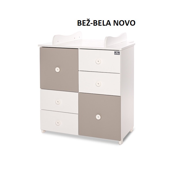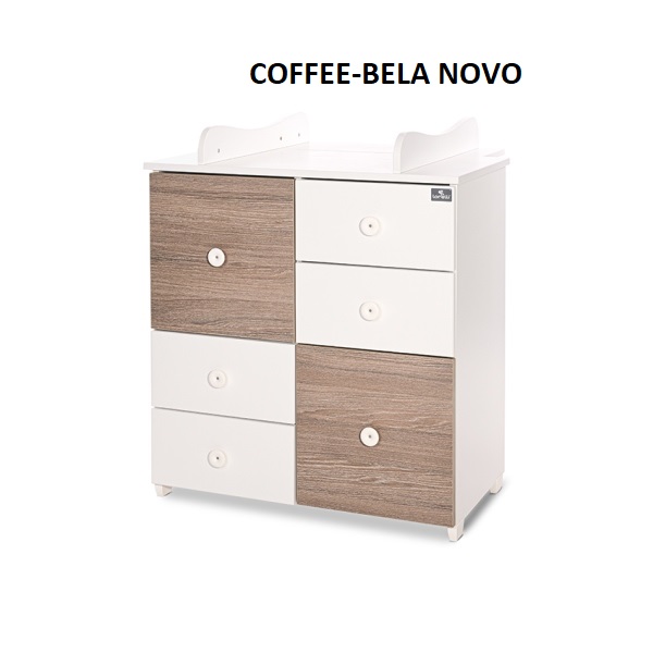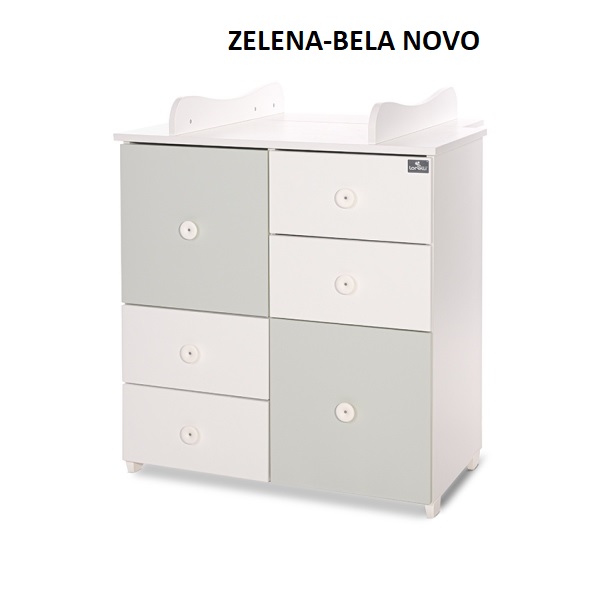Previjalna komoda Lorelli Cupboard v različnih barvnih kombinacijah je izredno praktična za previjanje, shranjevanje otokovih oblačilc in odlaganje pripomočkov. Zgornja ploskev je s stranicami izredno prilagodljiva, saj lahko prilagodite ploskev v širino ali dolžino. Dodatna deska na ploskvi omogoča da previjalno površino podaljšate tudi v globino. Ko komode ne potrebujete več za previjanje, stranice na deski in desko za podaljšanje previjalne površine sestavite v praktični polički nad komodo. Komode so prilagodljive pohištvu-kombiniranimi sestavi otroške sobe LORELLI. Otroško pohištvo LORELLI je narejeno premišljeno in kakovostno za uporabo od rojstva do šole
