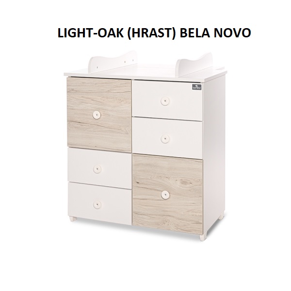 Previjalna komoda Lorelli Cupboard je izredno praktična za previjanje, shranjevanje otokovih oblačilc in odlaganje pripomočkov. Zgornja ploskev je s stranicami izredno prilagodljiva, saj lahko prilagodite ploskev v širino ali dolžino. Dodatna deska na ploskvi omogoča da previjalno površino podaljšate tudi v globino. Ko komode ne potrebujete več za previjanje, stranice na deski in desko za podaljšanje previjalne površine sestavite v praktični polički nad komodo. Komode so prilagodljive pohištvu-kombiniranimi sestavi otroške sobe LORELLI. Otroško pohištvo je narejeno premišljeno in kakovostno za uporabo od rojstva do šole